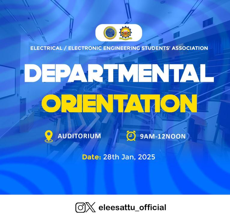 This annual program serves to formally initiate newly admitted Electrical/Electronic Engineering Undergraduates (Freshers) into the Department. This event features the Head of Department (H.O.D.), various departmental lecturers, Alumni, and the ELEESA Executives, among others. The orientation is designed to introduce and induct the Freshers by: