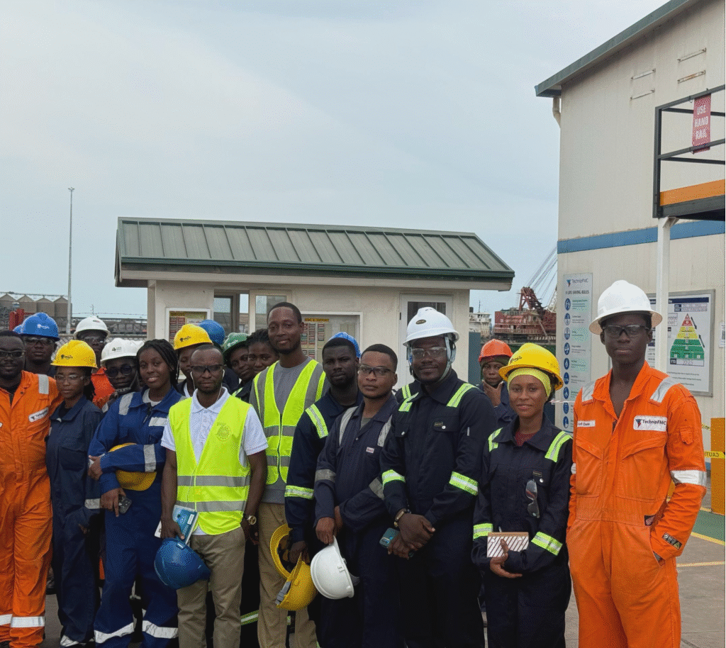 Petroleum Engineering Students Association (PESA) in collaboration with the Society of Petroleum Engineers (SPE) organized an insightful field trip to TechnipFMC’s facility at the Takoradi Harbour. This academic-industry engagement was designed to expose students to the practical operations, technological systems, and professional standards of one of the world’s leading providers of subsea, surface, and offshore engineering solutions.